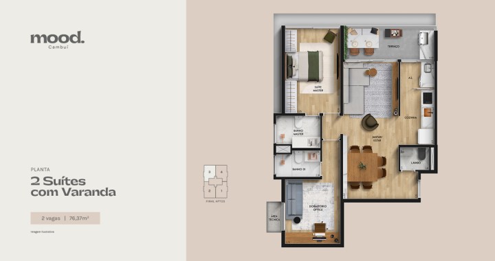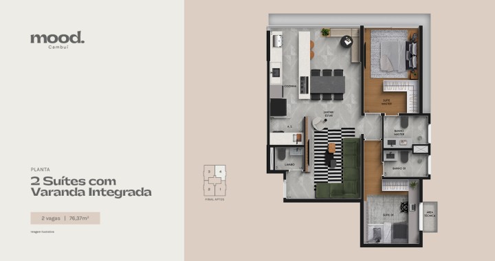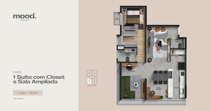 Com espaços amplos e versáteis, e possibilidade de personalização por meio do Congesa 2U, os detalhes dos apartamentos do Mood Cambuí foram pensados para que você se sinta verdadeiramente em casa, cercado por ambientes com o seu toque final.