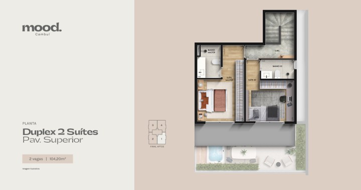 Aptos Duplex - 104,20 m2 - 2 Suítes. Terraço. 2 Vagas.
