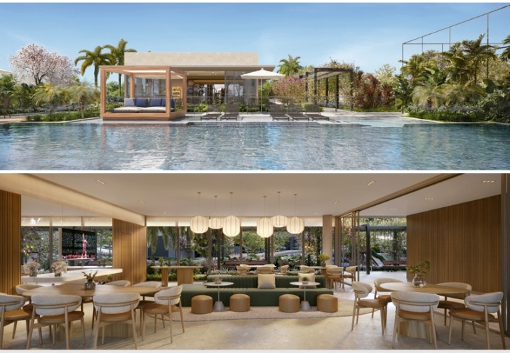Infraestrutura completa de lazer, incluindo piscina, espaços de convivência e áreas fitness.